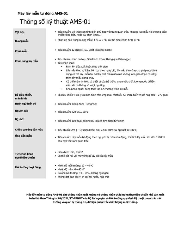 AMS-01 là máy lấy mẫu nước tự động dùng cho quan trắc nước thải, nước mặt, hệ thống xử lý nước…